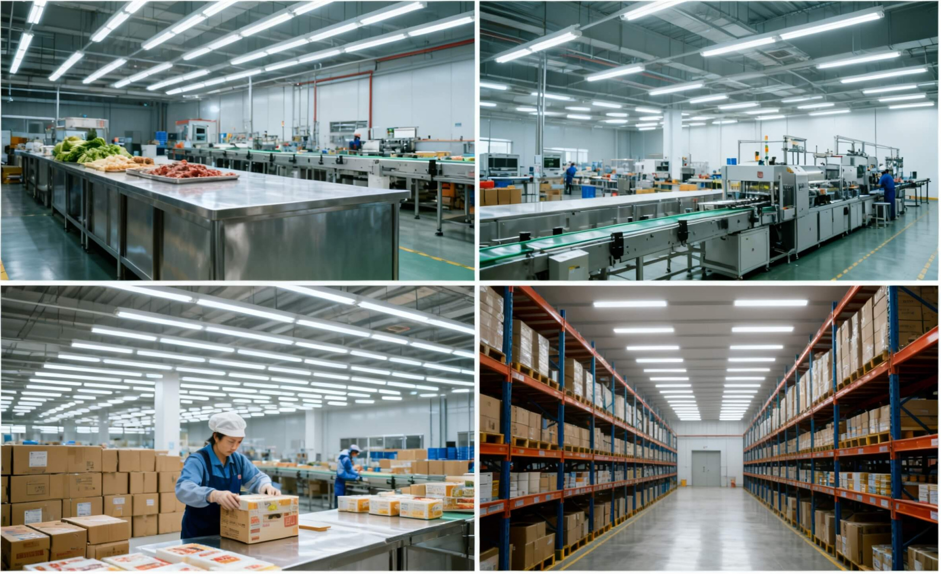 Key advantages:High illuminance levels (300–500 lux) and excellent color rendering (Ra ≥90), helping workers accurately identify food appearance, labels, and minor defects. Anti-glare designs also reduce visual fatigue during long working hours.